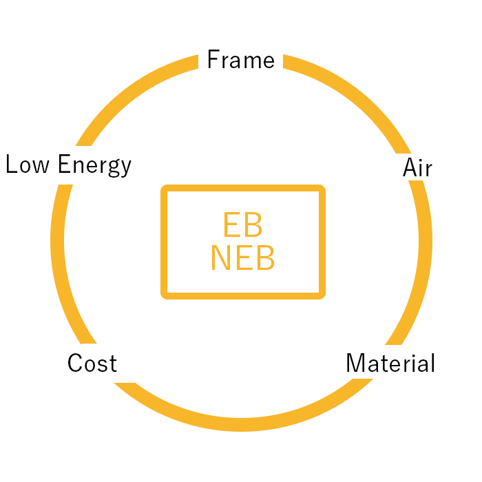 住まいにおいて求めるものは、ご家族のよって様々なご要望があると思います。RINGSが考える住まいづくりにおいては、ご家族のQOL を高める要素の一つとして、EB・NEBを実現する為に重要視させていただきたい事がこれから示す5つの項目です。