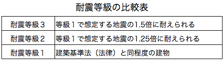 耐震等級1とは「震度6、7に耐える事を目標に造る建物」で、施工業者独自の検査で取れる等級ですが、2、3等級は第三者機関の調査で受けられる等級になります。